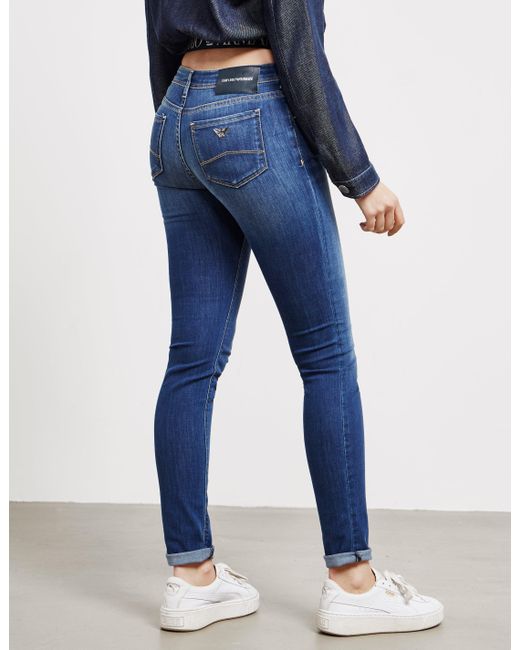 Italian brand emporio armani pride themselves on their high-end luxury goods, producing quality garments in a ready to wear fashion for style lovers everywhere, updating your wardrobe with must have simple staples throughout the year. Presented in a blue colourway, these j28 slim jeans are a must have for your casual wardrobe. Details; blue colourway, denim construction, slim fit, tonal stitching throughout, zip and button fasten, five pocket design, belt loops and brand patch to the back to complete. Model is 5'9" and wears a 26r. Colour: blue
