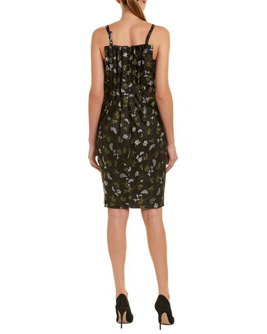 Color/pattern: black Approximately 40in from shoulder to hem Measurement was taken from a size 36 and may vary slightly by size Model is 5ft 10in Design details: floral jacquard design, pleated styling Centre back zipper with hook-and-eye closure Shell: 66% silk, 34% polyester Lining: 100% rayon Dry clean only Imported. Colour: black