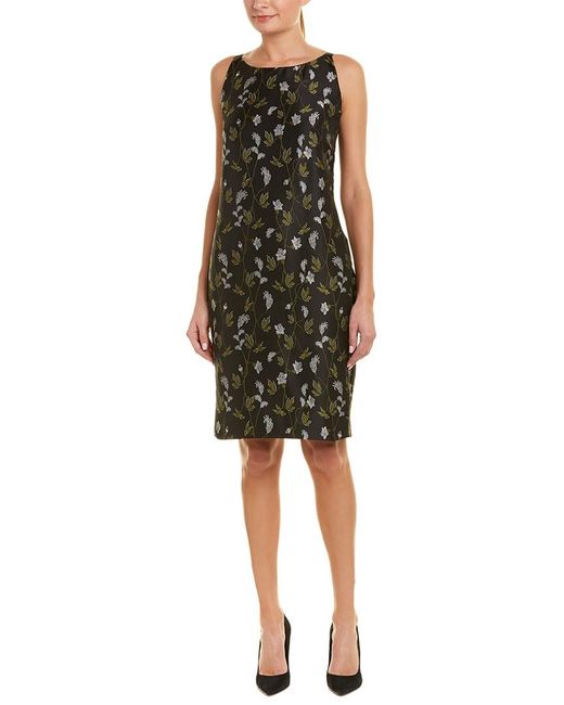 Floral shift dress with pleats at back. Boatneck. Sleeveless. Concealed back zip with hook closure. Lined. Silk/polyester. Dry clean. SIZE & FIT. Shift silhouette. About 39.5" from shoulder to hem. Model shown is 5'10" (177cm) and wearing US size 4.