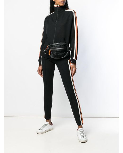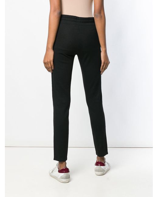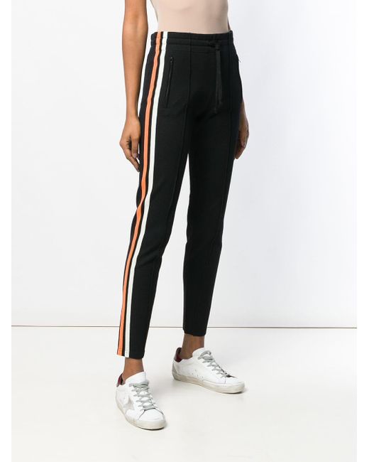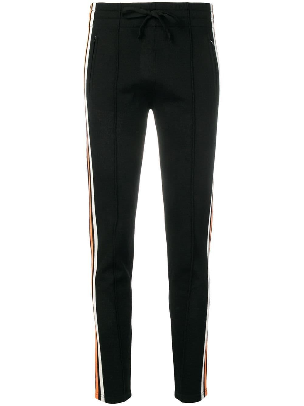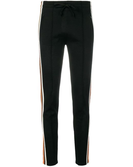 The Isabel Marant Étoile collection defines the label's chic Parisian attitude and fuss-free spirit, presenting pieces that blend relaxed tailoring with the designer's signature bohemian vibe. Expect comfortable, care-free silhouettes fused with the label's refined feminine elegance. These black skinny track trousers feature a mid rise, an elasticated drawstring waist, zipped side pockets, a stripe detail to the side and a regular length. Material:Polyester/Polyamide/Viscose/Spandex/Elastane. Colour: black