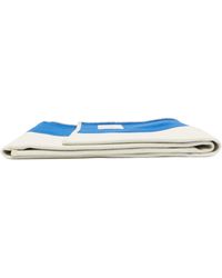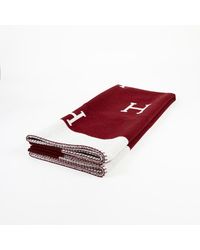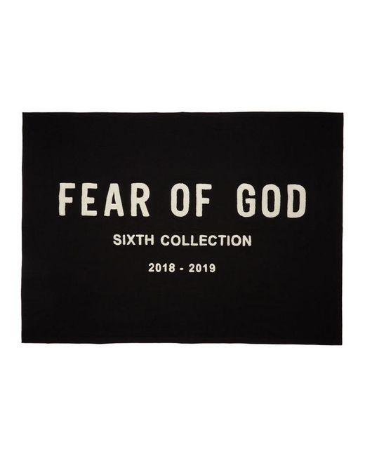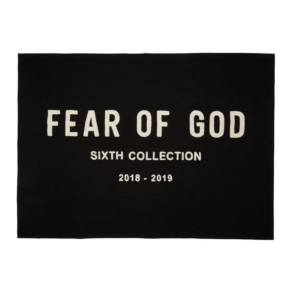 Rectangular French terry throw blanket in black. Chenille text applique in off-white at front. Approx. 66.5 length x 48 height. Colour: black