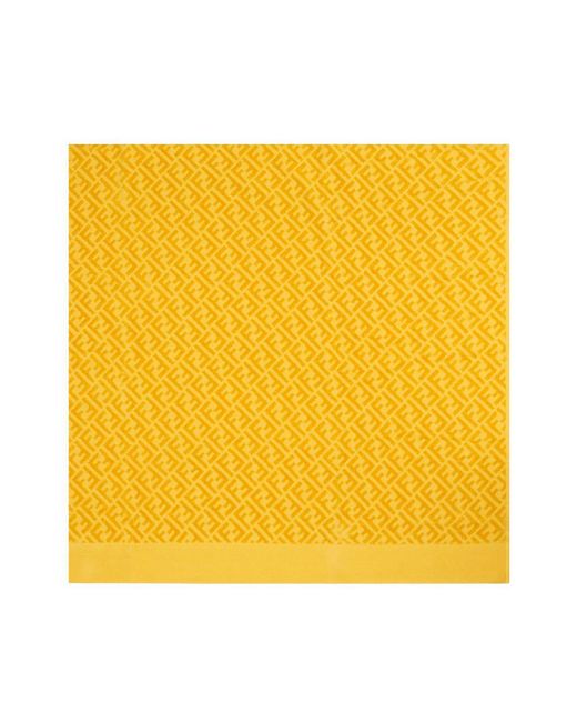 Join the logomania world of Fendi by purchasing one of their signature pieces. Available in various colours and fabrics, you will definitely be on trend with one of their designs. Lounge in style at the beach with this yellow cotton beach towel that features a signature FF logo design. Material:Cotton. Colour: yellow