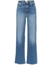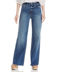 From frame heritage denim, this super high-rise jean channels a 90s california mood. Cut from premium stretch denim, this raw-hem pair nips in at the waist, is fitted through the hips, relaxing slightly at the thighs, and extends out into a not-too-roomy wide leg. High rise fit. Comfort stretch denim. 97.5% cotton/2% polyester/0.5% elastane. Machine wash. 11" front rise/32" inseam/20.5" leg opening. Model is 5'10" tall/177cm and is wearing a us size 26. Style: hcajra439-cldw. Colour: blue