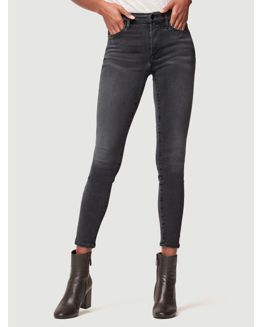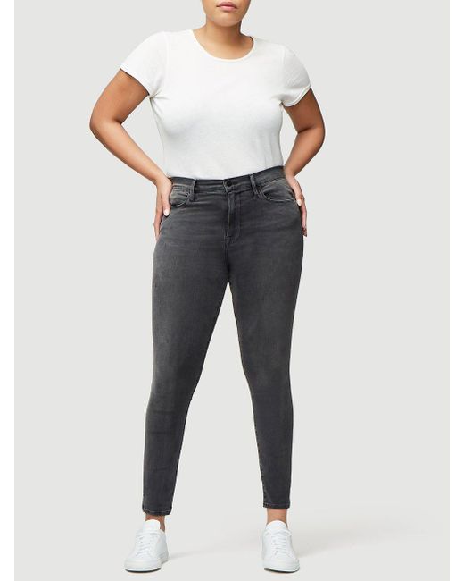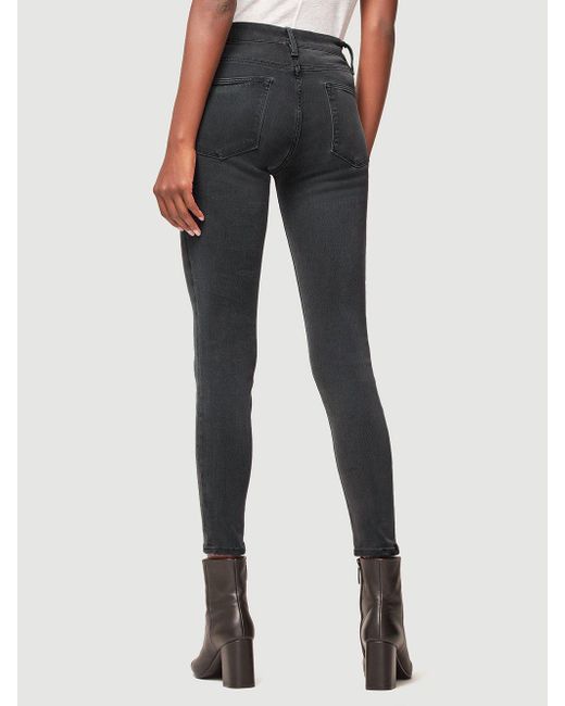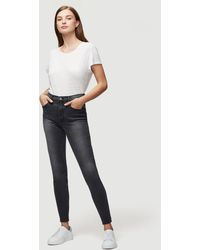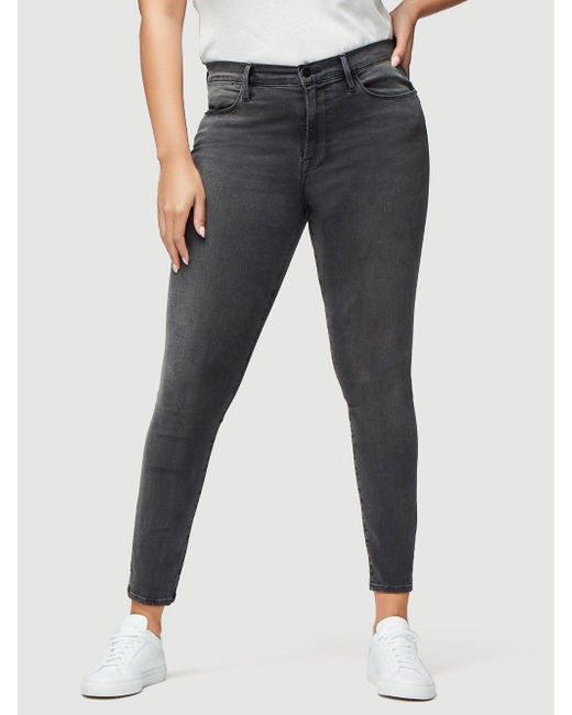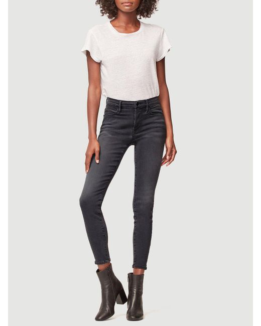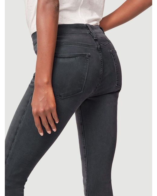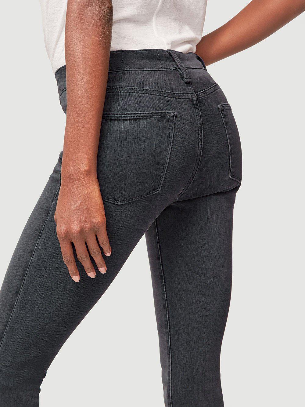 Classic 70s inspired high-rise jean with a contemporary skinny silhouette in a grey wash. Features whiskering and a slight fade on the thighs. High-rise fit. 76% cotton/15% modal/6% polyester/3% elastane. Machine wash. 9.75" front rise/28" inseam/9.75" leg opening. Model is 5'9" tall/cm and is wearing a us size 26. Colour: multicolour