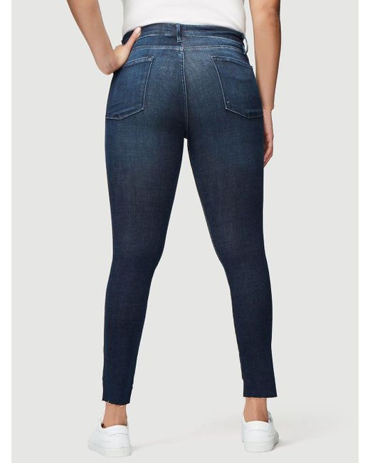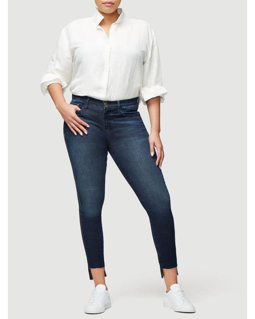 Our classic skinny in an indigo wash. Crafted from premium denim with super stretch and strong recovery. Features whiskering, a gentle fade down the thigh, and a raw stagger hem. Mid-rise skinny fit. Super stretch denim. 91% cotton/7% polyester/2% elastane. Machine wash. True to size. 8.25" front rise/26.5" inseam/10" leg opening. Model is 5'9" tall/cm and is wearing a us size 26. Colour: blue