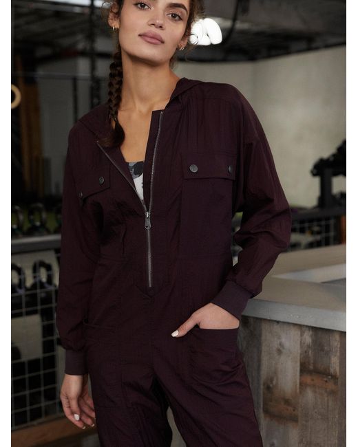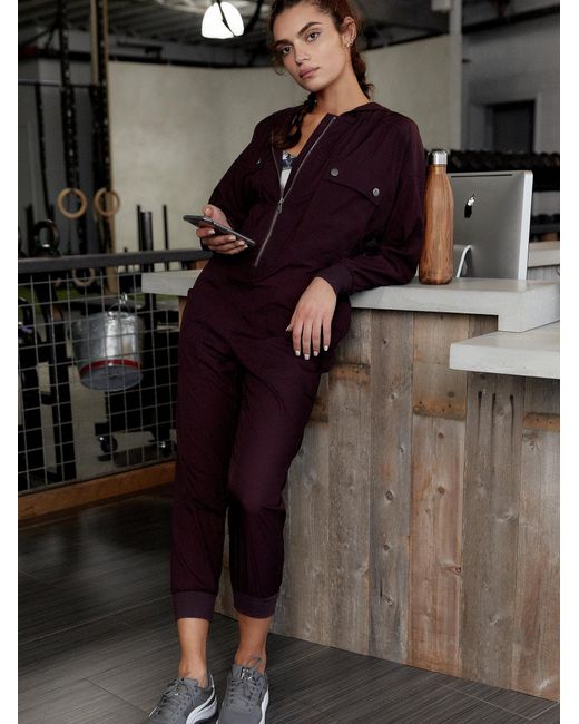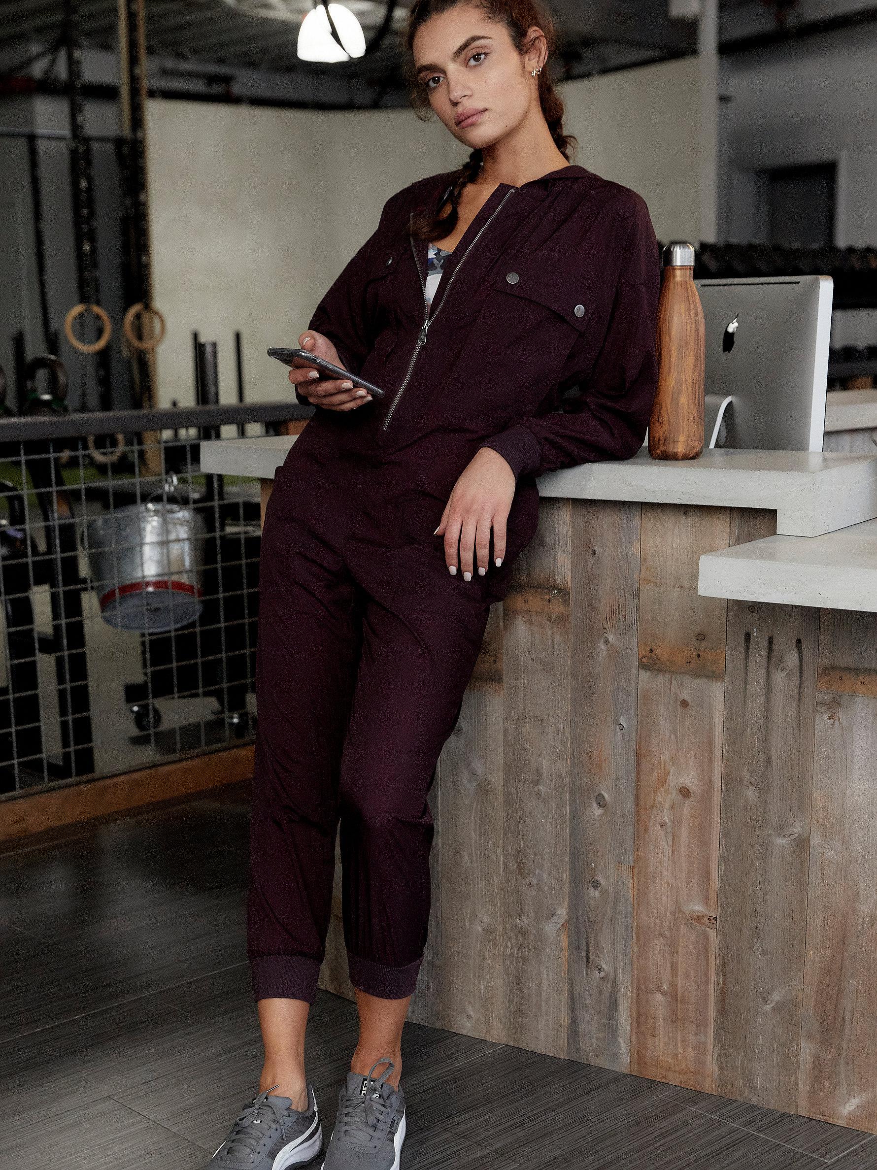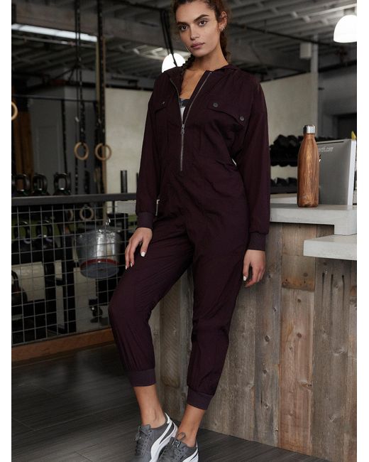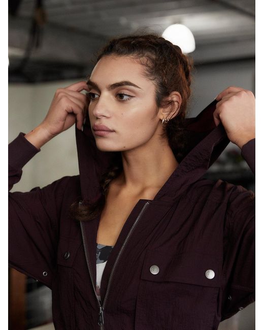 Its lightweight design makes it cool enough to sweat in, with a utility-inspired silhouette you can wear anywhere. Front cargo pockets. Hip and back pockets. Cinched wrists and ankles. Zip-up neckline with hood. Unlined interior. We believe in the power of community, in supporting and lifting each other up and always #movingtogether. Machine Wash Cold. Import. Bust: 46 in. Sleeve Length: 29.5 in. Waist: 42.5 in. Hips: 48 in. Rise: 12 in. Inseam: 28 in. 100% Nylon.