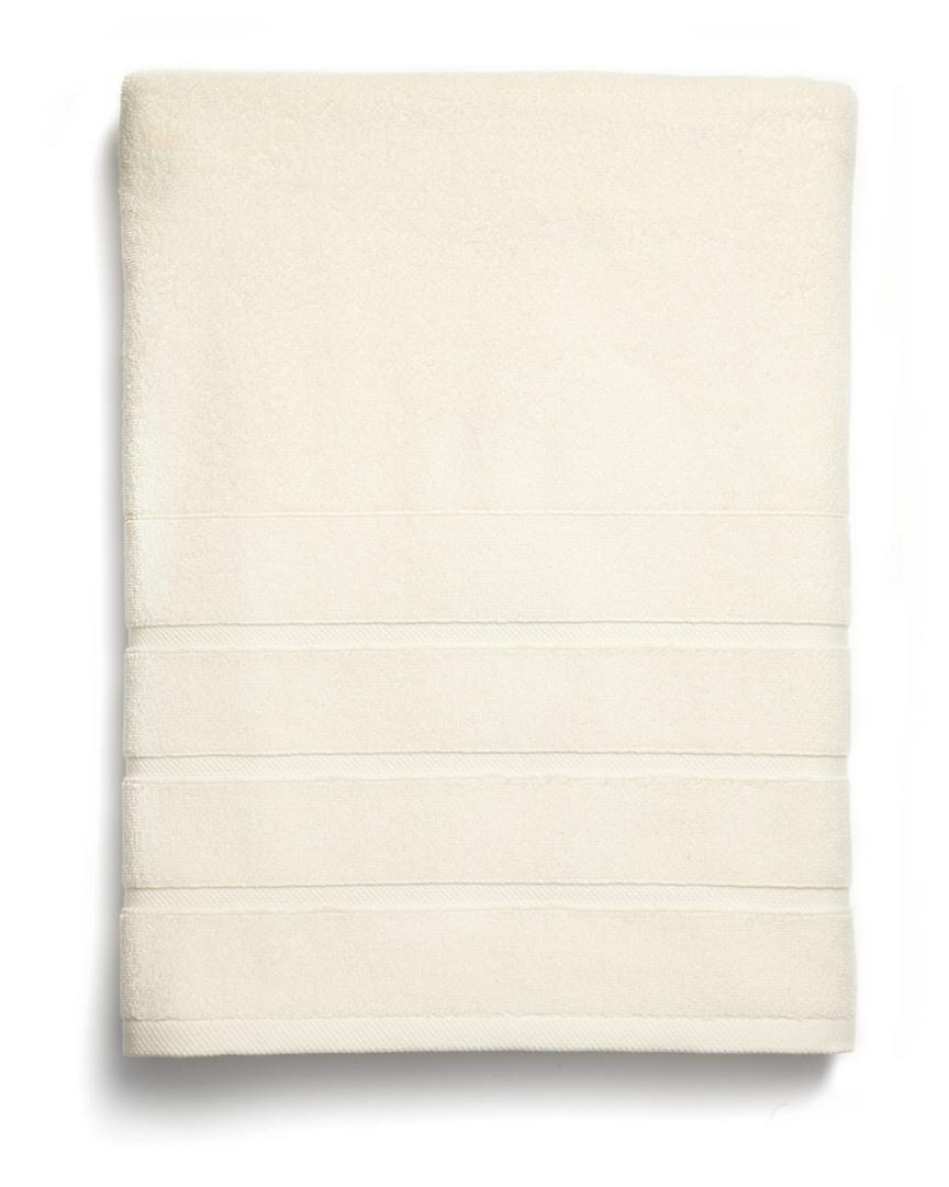Plush cream lined bath sheet. Part of the Lanes Border Collection. 100% Egyptian cotton. 650 grams per square meter. Combed cotton construction. Measures 66in long x 35in wide. Care instructions: Machine washable. Made in Turkey.