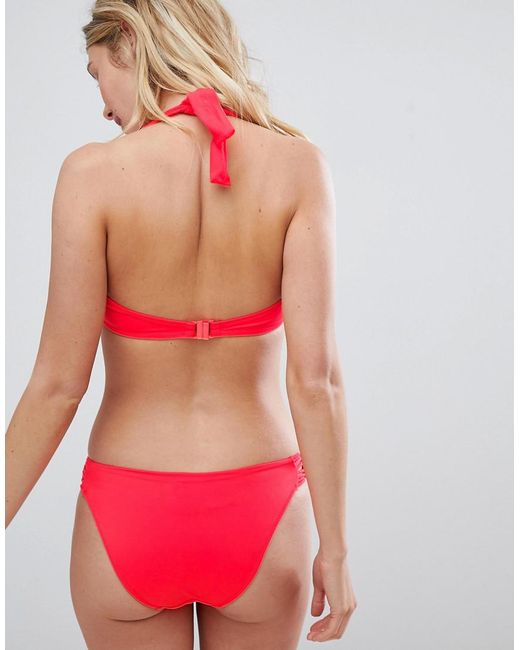 Bikini top by Freya, Just add water, Halterneck, Mesh-lined cups, Non-padded design, Underwired support, It's what's underneath that counts, Clasp closure. Catering for the fuller bust with their eclectic lingerie and swimwear line, Freya specialise in quality and fit. Punchy prints and feminine florals adorn their bras and briefs in an array of luxe fabrications, while their functional collection proffers an extensive selection of sizes, extending from to a C to a J cup. Elastane/ nylon/ polyester/ print. Colour: red
