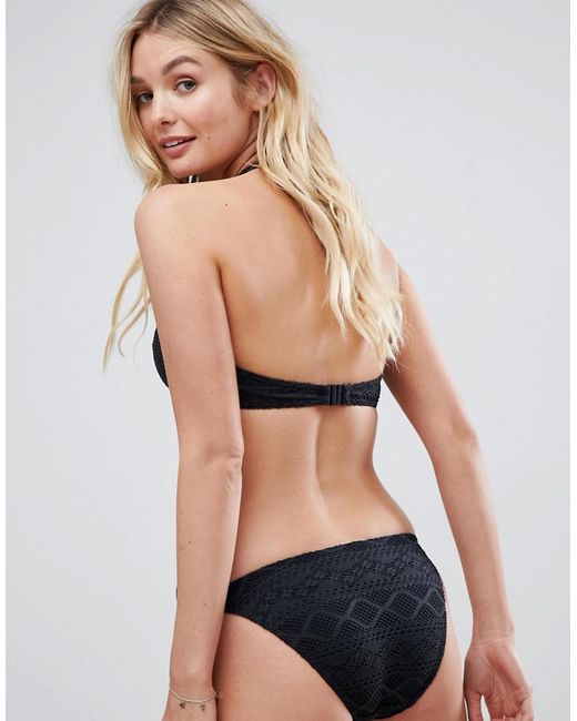 Bikini briefs by Freya, Just add water, Low rise, Tie sides, Crochet overlay, It's all in the details, Brief cut. Catering for the fuller bust with their eclectic lingerie and swimwear line, Freya specialise in quality and fit. Punchy prints and feminine florals adorn their bras and briefs in an array of luxe fabrications, while their functional collection proffers an extensive selection of sizes, extending from to a C to a J cup. Elastane/ polyamide/ print. Colour: black
