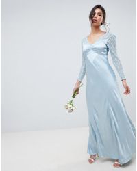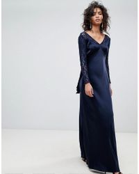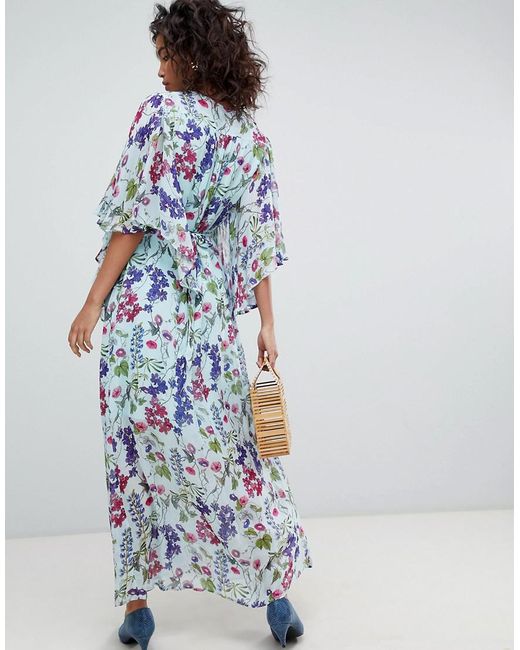 Women's Blue Kimono Sleeve Printed Maxi Dress