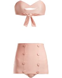 Swimwear sizing fits smaller than apparel sizing, order one size up for more coverage. Model measurements: 5'10" height, 33.5" bust, 23.5" waist, 34.5" hips, wearing a size 38. V-neck. Adjustable shoulder straps. Scalloped embroidery trim on the front bodice. Floral eyelet front panels. Features front tummy control lining for a slimming finish. Deep scoop back. Fixed bust padding. 72% polyamide/28% elastane. Hand wash. Colour: white