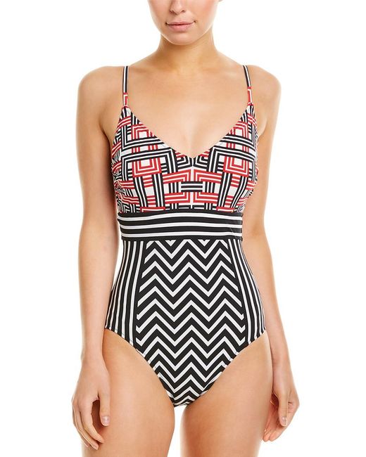 Color/pattern: black, red, and white Design details: underwire support, adjustable shoulder straps Moderate coverage 72% polyamide, 28% elastane Hand wash Imported. Colour: red
