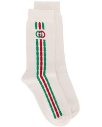 Stretch knit tights with allover interlocking g pattern. Ivory ;elastic waistband ;80% polyamide and 20% elastane;made in italy. Colour: white