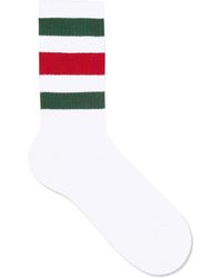 Calf and ankle socks continue to be an important part of alessandro michele's design aesthetic. Made from stretch cotton with the web stripe in green and red. White stretch cotton with green and red web;81% cotton 17% polyamide and 2% elastane;made in italy. Colour: white