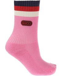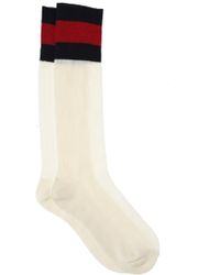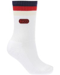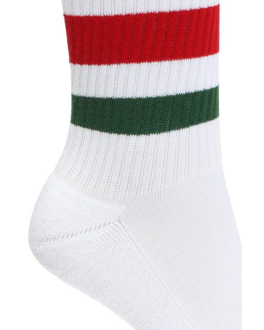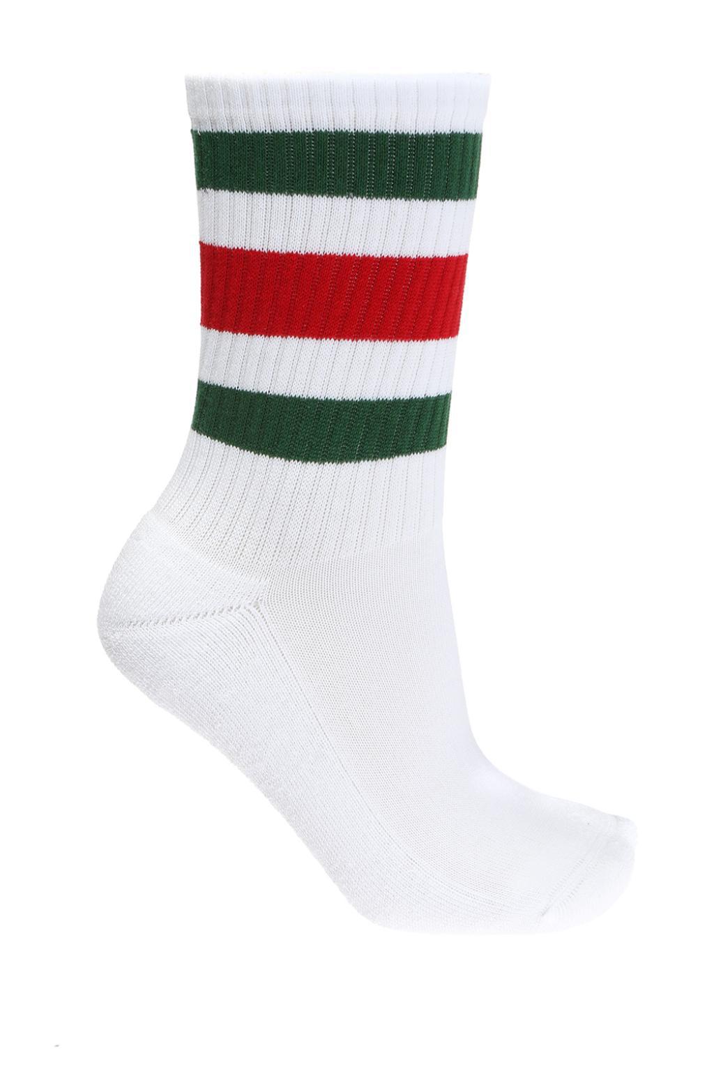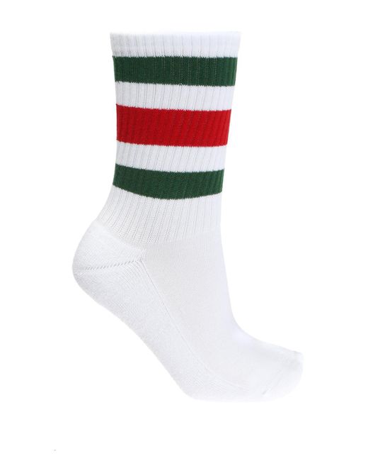 White cotton socks from Gucci. Decorated with three green and red stripes. 81% Cotton. 17% Polyamide. 2% Elastane.