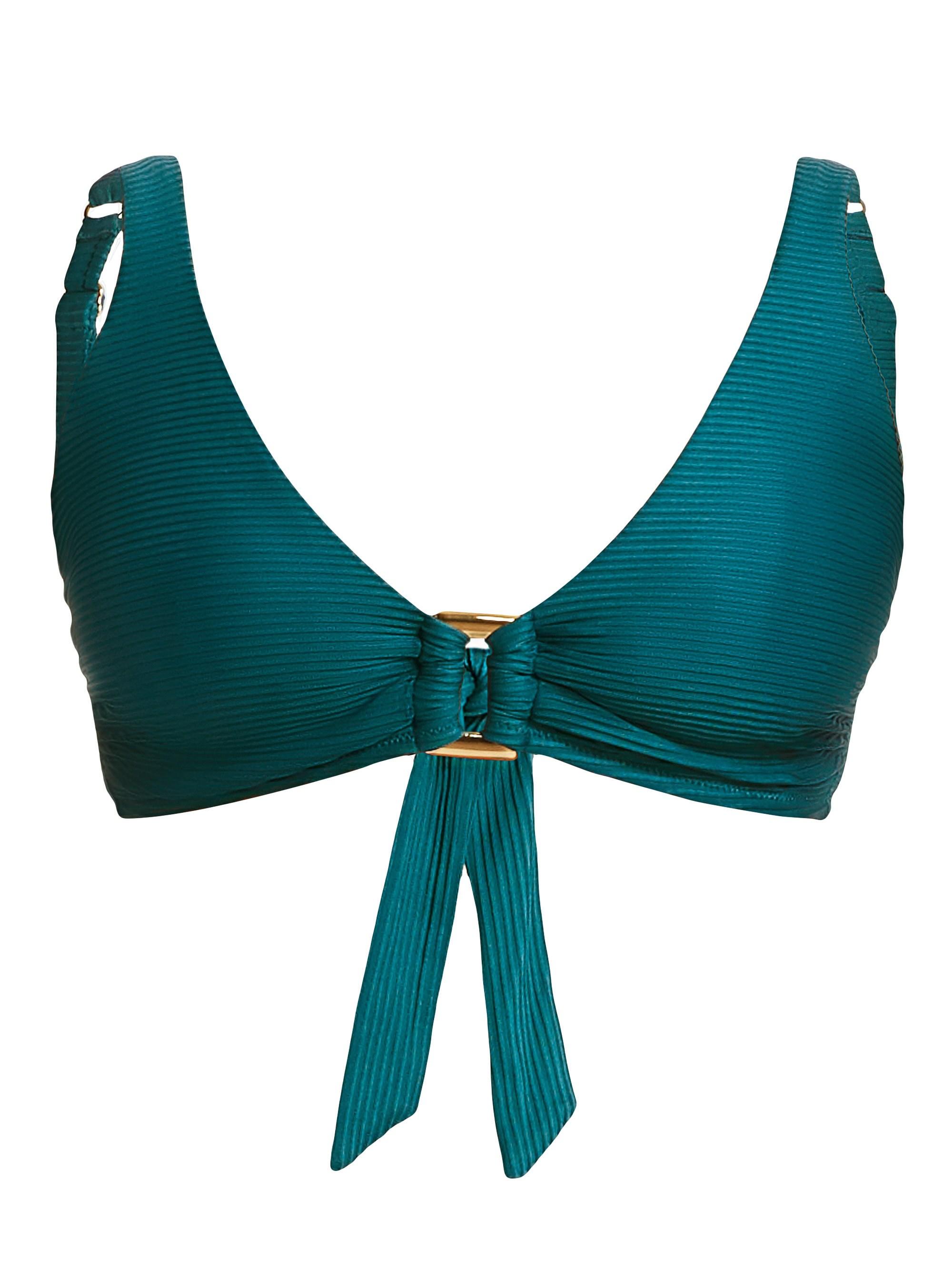 Textured knit swim top with goldtone buckle detail mid-bust. V-neck Adjustable straps Back tie Underwire bra with soft boning Lined Nylon/spandex Hand wash Please note: Bikini bottom sold separately. Heidi Klein. Colour: multicolour