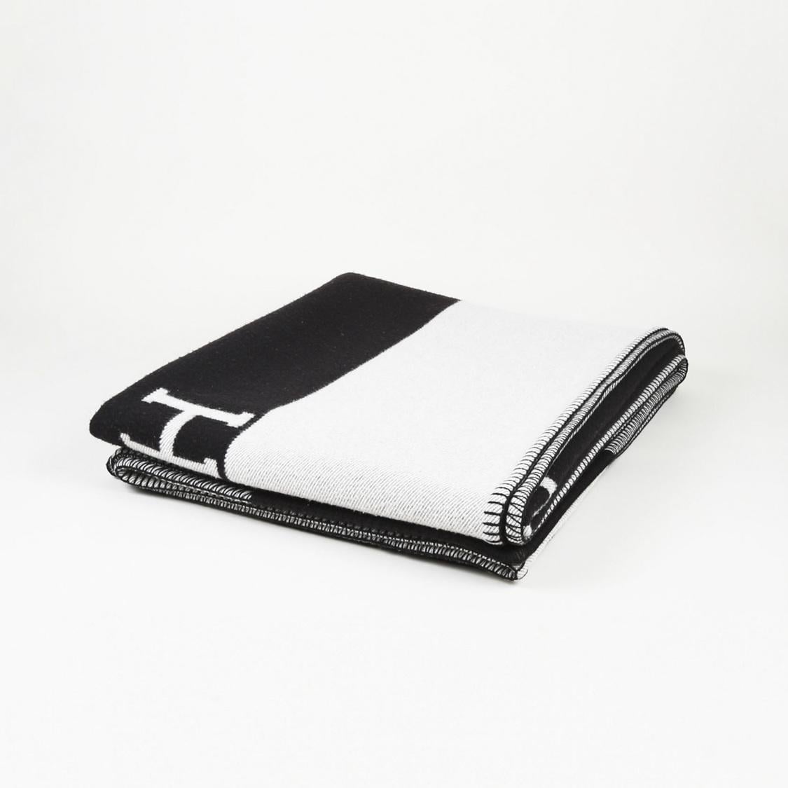 Hermes Avalon cashmere and wool blend throw blanket features the H motif and whipstitch trim. Cashmere/Wool. Colour: black