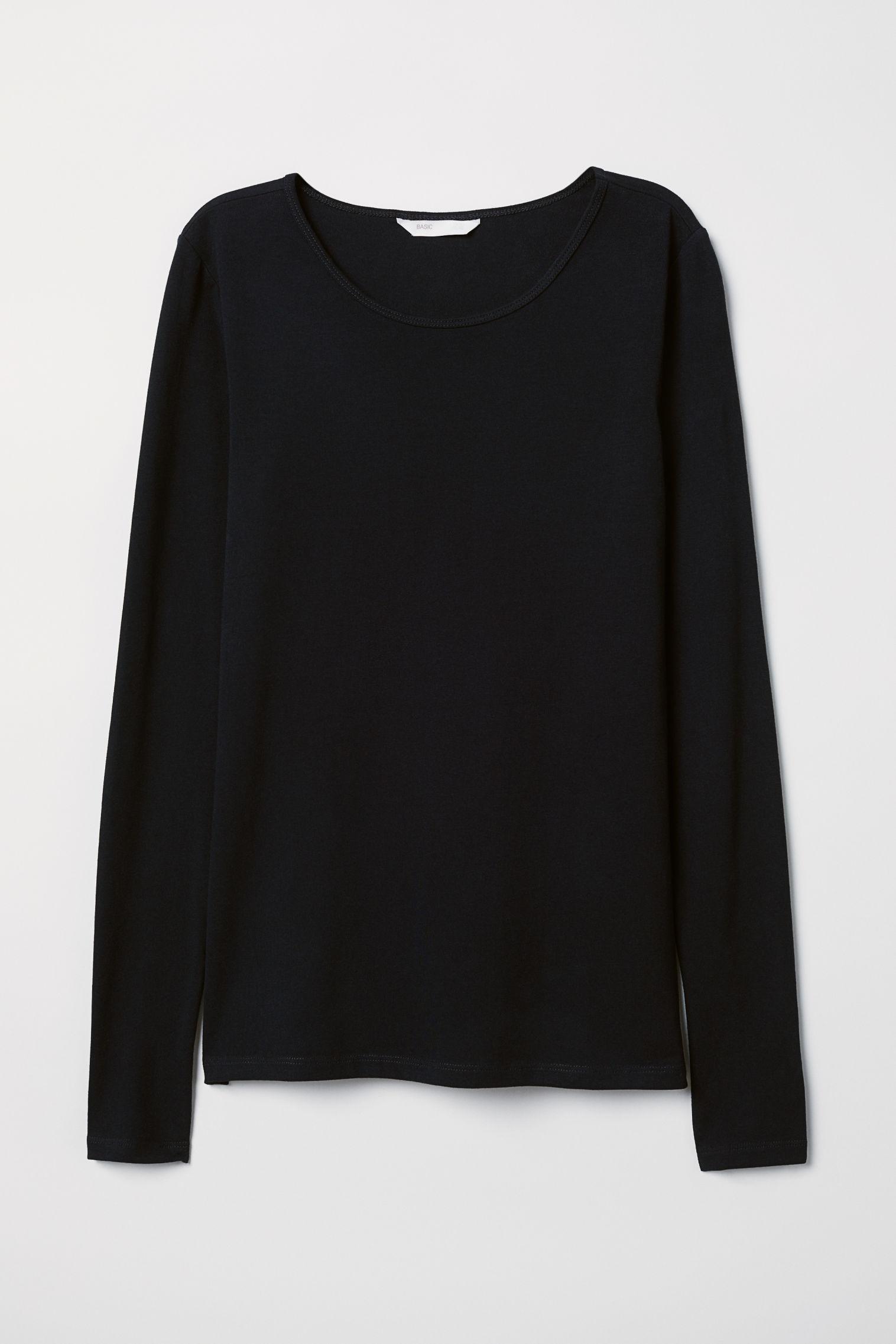 Long-sleeved top in soft jersey. Cotton 95%, Elastane 5%. Machine wash cool. Colour: black