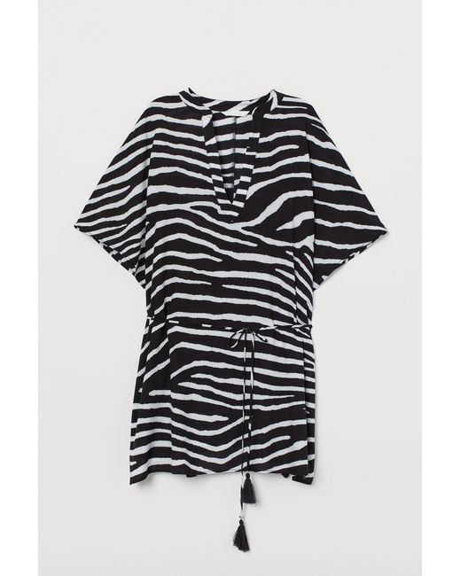 Kaftan in an airy viscose weave with a V-neck, short sleeves and detachable tie at the waist. Colour: natural