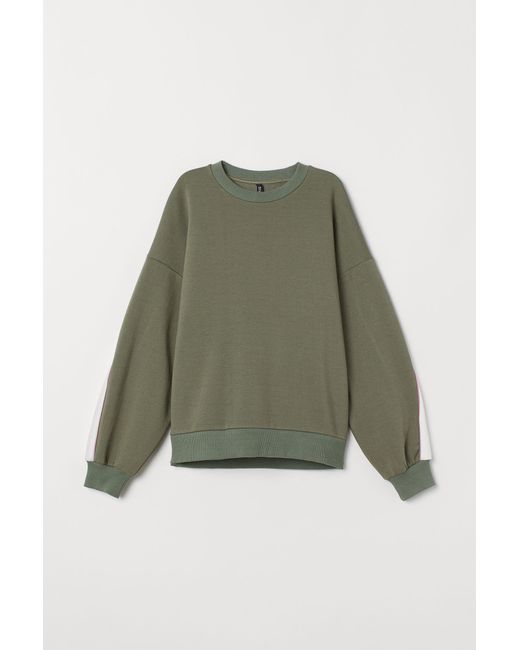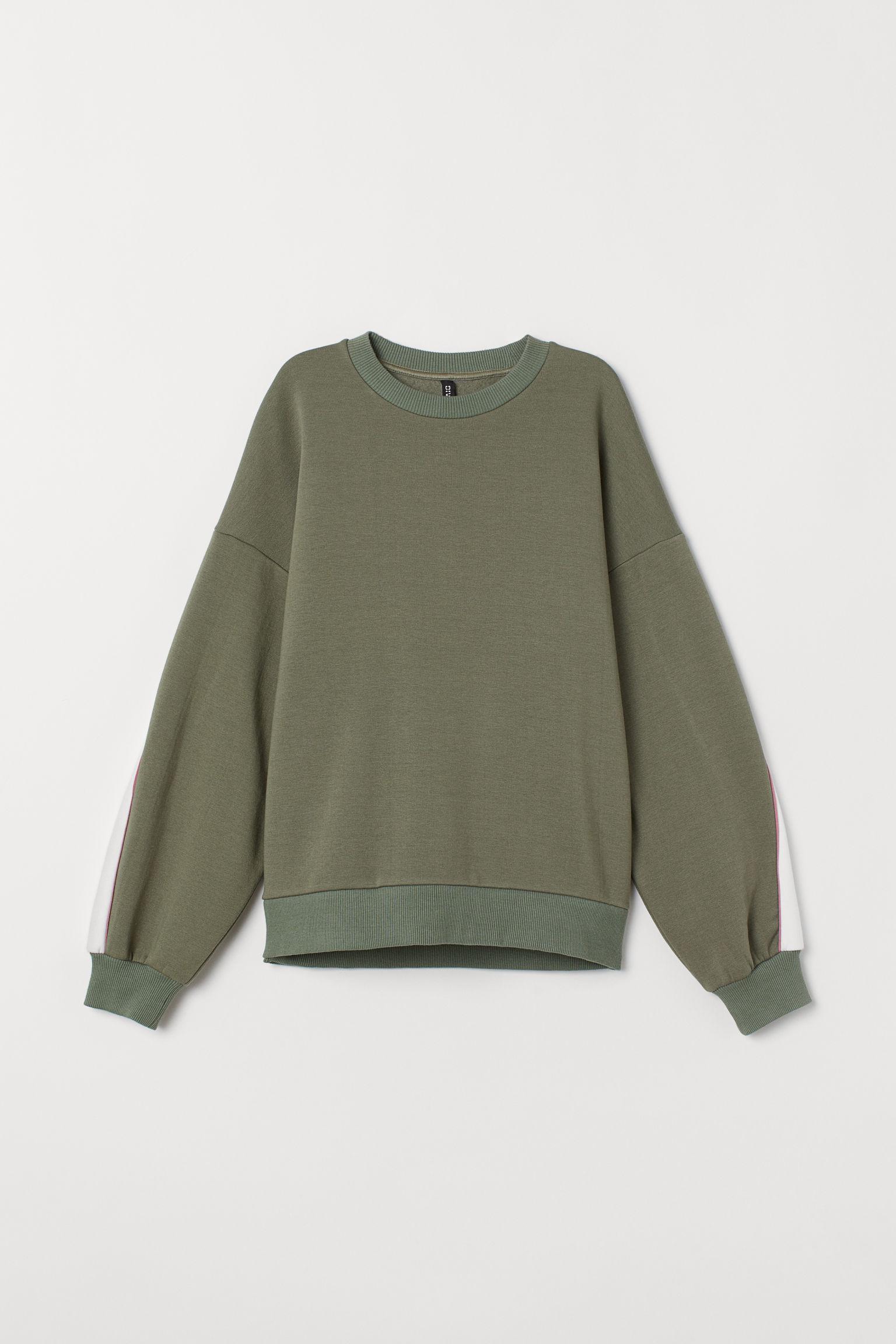 Top in printed sweatshirt fabric with low dropped shoulders, long, wide sleeves and ribbing around the neckline, cuffs and hem. Soft brushed inside. Colour: green
