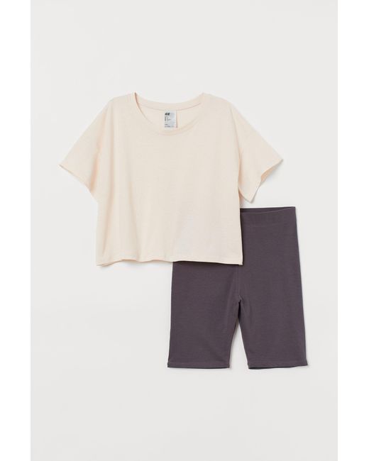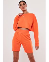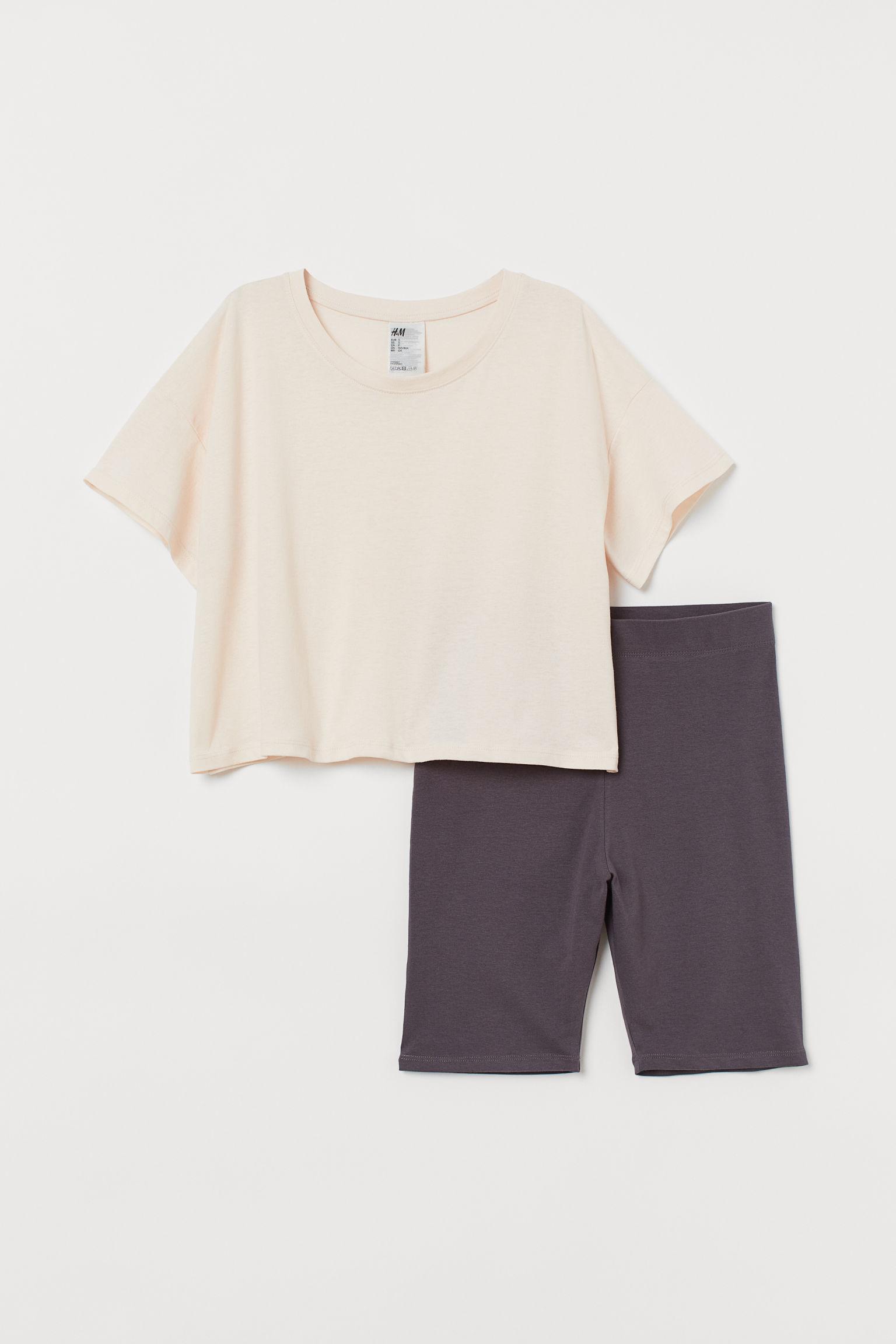 Pyjamas with a top and tight shorts in jersey made from a cotton blend. Shorter top in a wide fit with dropped shoulders and short sleeves. Shorts with an elasticated waist. Colour: orange