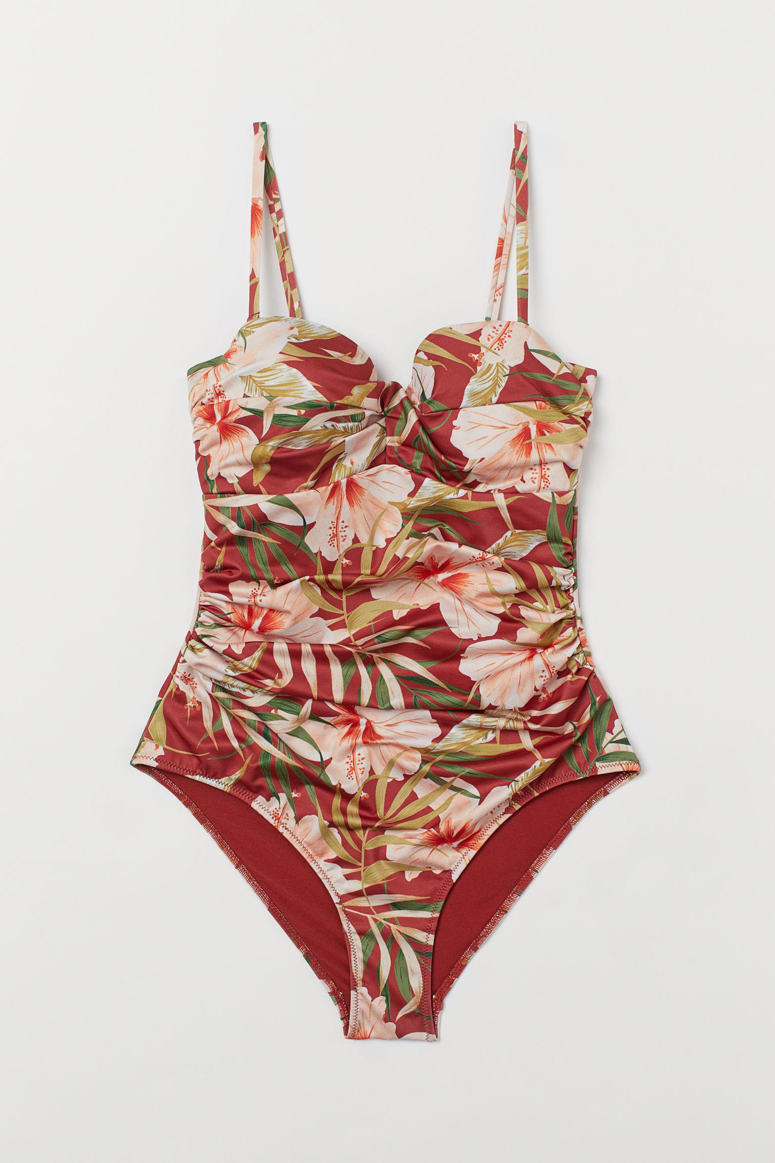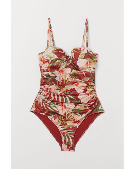 Fully lined shaping swimsuit that has a sculpting effect on the tummy, back and seat. Lightly padded cups, support panels, decorative gathers in the sides, and detachable shoulder straps. Colour: red