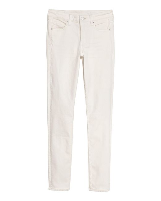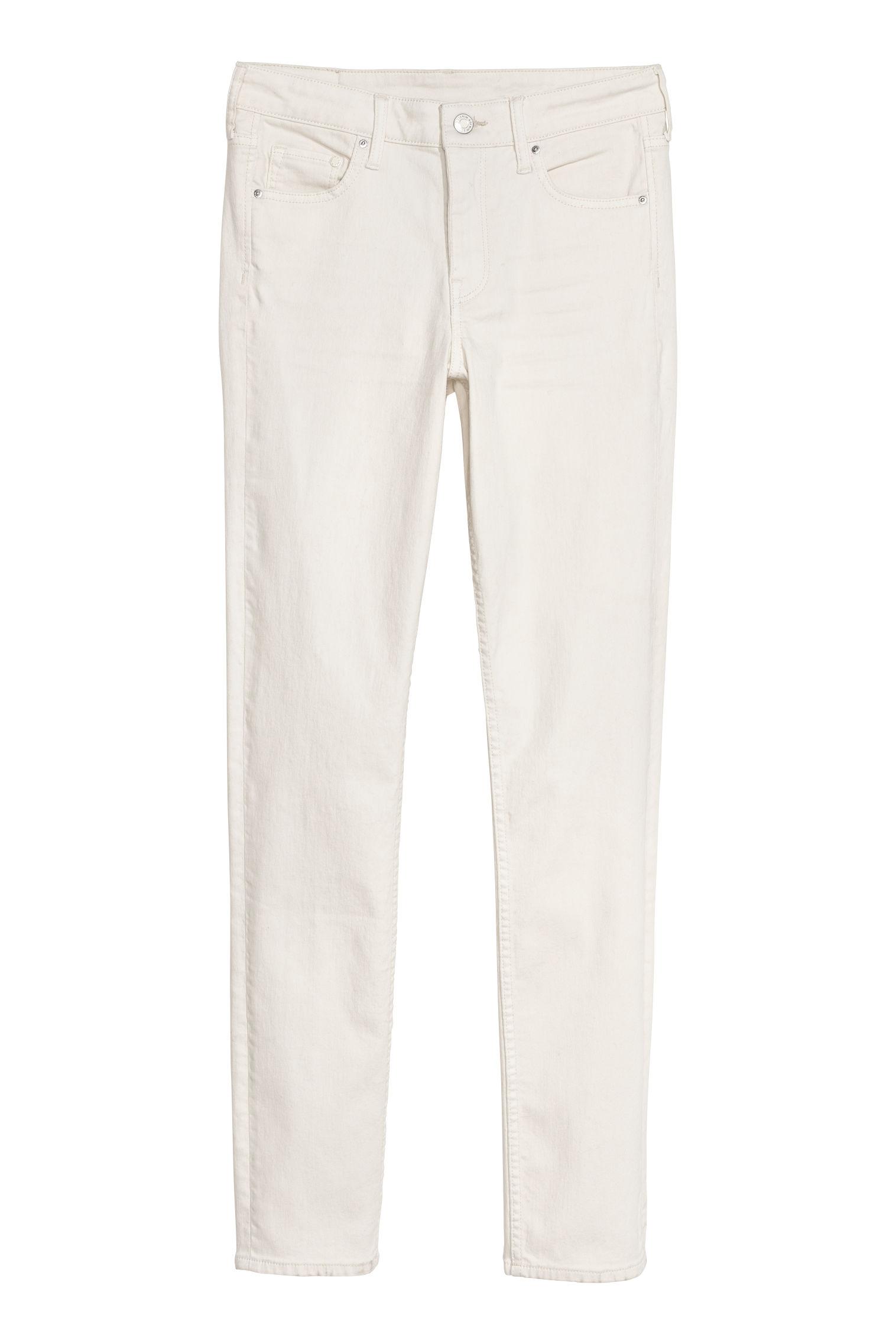 5-pocket jeans in washed stretch denim with a regular waist, zip fly and button at the waist, and skinny legs. Colour: white