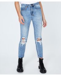 Women's Blue Slim Mom Jeans Trashed