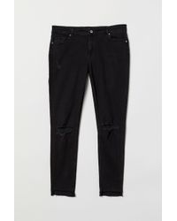 5-pocket jeans in washed superstretch denim with hard-worn details, a regular waist, zip fly and button and super-skinny legs with raw-edge hems.