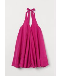 Short dress in a patterned crêpe weave with an open back and ties at the back of the neck. Long sleeves with an opening and tie at the cuffs, an elasticated seam at the waist and a flared, tiered skirt. Unlined.