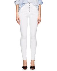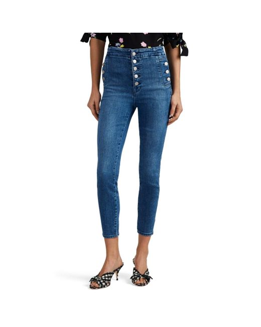 J Brand's Natasha skinny crop jeans are composed of faded blue stretch-cotton denim. This chic pair is designed with an ultra high rise and silvertone button-detailed pockets. Sits above waist. Slim through hips and thighs. Whiskering. Fading. Three-button side on-seam pockets. Patch back pockets. Belt loops. Dark blue topstitching. Silvertone logo-detailed hardware. 11.00 rise, 26.25 inseam, 9.50 leg opening (approximately). Button fly. 81% cotton, 11% lyocell, 6% elastomultiester, 2% elastane. Machine wash. and Imported. J Brand Women's Natasha High-Rise Skinny Crop Jeans - Blue Size 31 A great designer gift. Stay on top of Spring trends and shop J Brand at Barneys Warehouse. Colour: blue