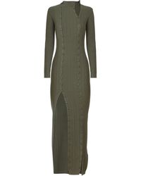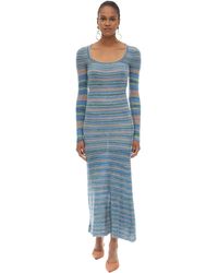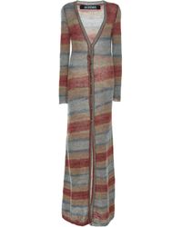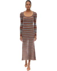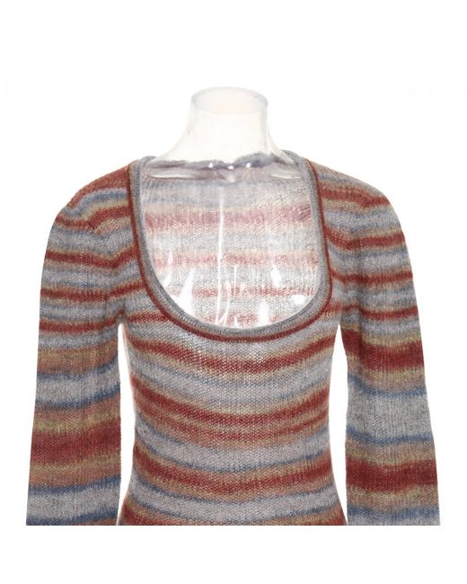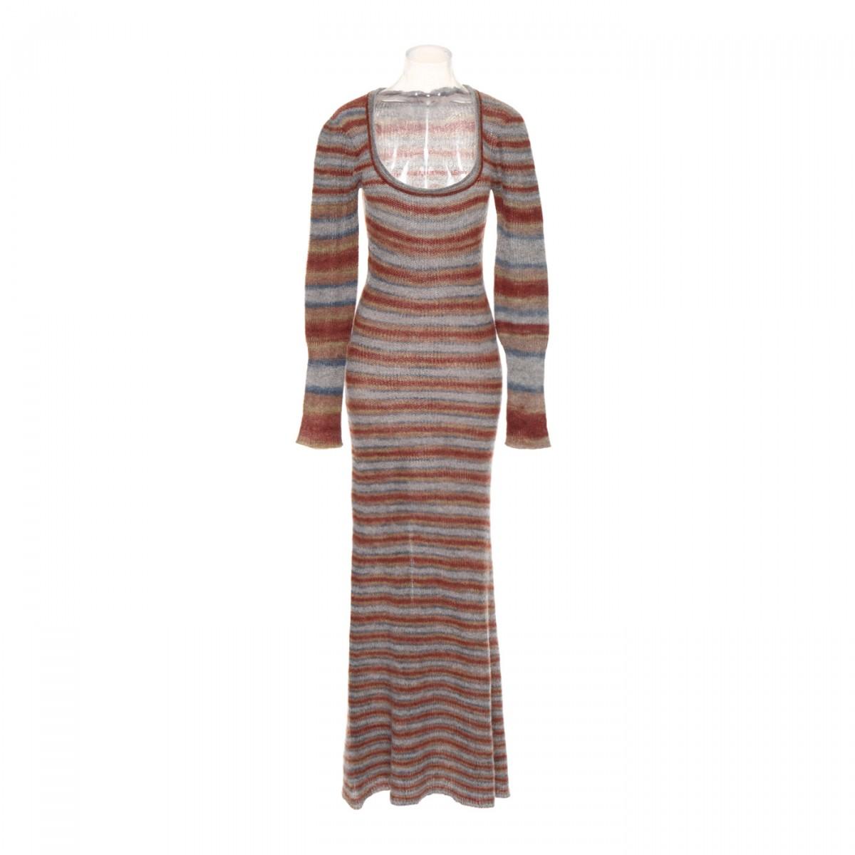 Jacquemus long dress in multicoloured striped knit, featuring long sleeve design, finished with a low frontal neckline, in mohair and alpaca. Colour: multicolour