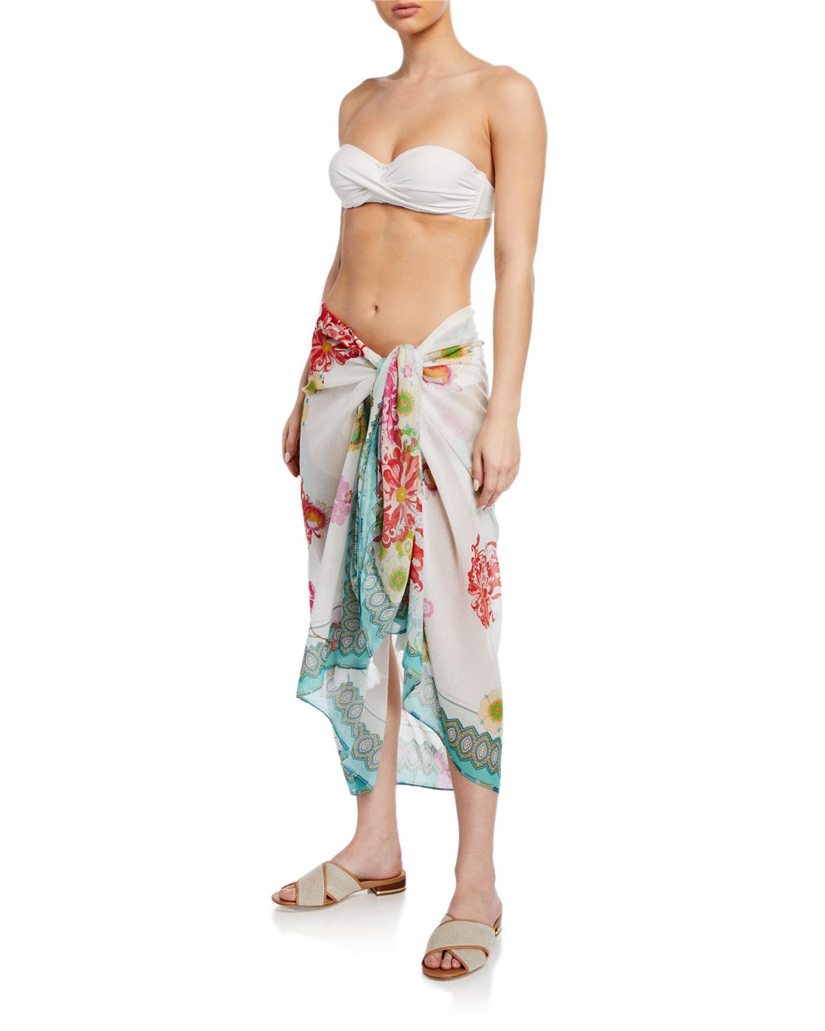 Johnny Was Multicolor Emilia Printed Cotton-silk Sarong Coverup