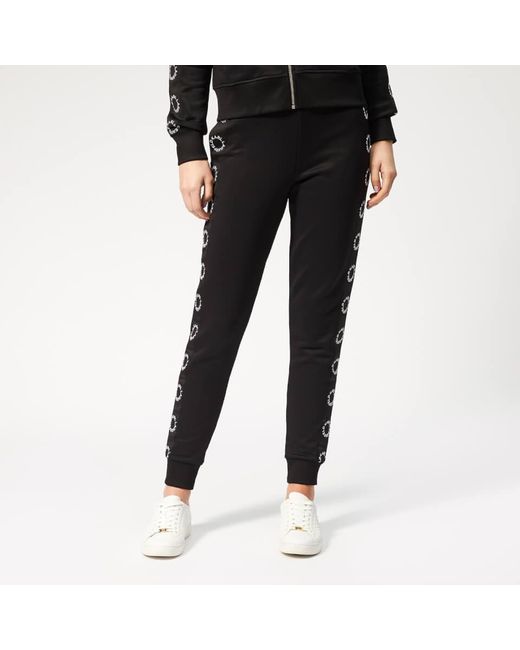 Combining athleisure styling with on-trend logo prints, the Karl Lagerfeld joggers are accentuated with branded grosgrain tape along the tapered legs. Cut from a stretch cotton blend with an elasticated waist and cuffs for a comfortable fit. Side pockets and a rear welt pocket complete the joggers. 56% Polyamide, 40% Cotton, 4% ElastaneModel is 171cm/5'7.5 and wears a size S. 56% Polyamide, 40% Cotton, 4% Elastane. Colour: black