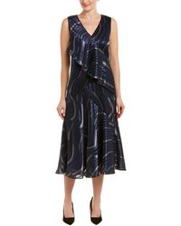 Color/pattern: admiral blue Approximately 53in from shoulder to hem Measurement was taken from a size small and may vary slightly by size Model is 5ft 10in Design details: satin and velour colorblocked panelling, metallic trim Centre back zipper with hook-and-eye closure Shell: 82% acetate, 18% polyester Combo: 82% rayon, 18% silk Combo 2: 59% polyester, 41% silk Dry clean only Imported. Colour: blue