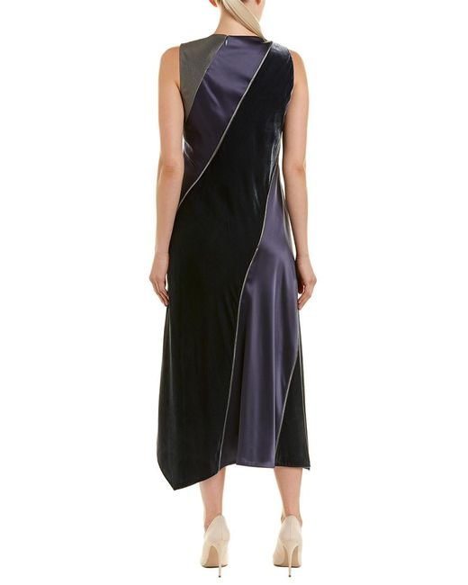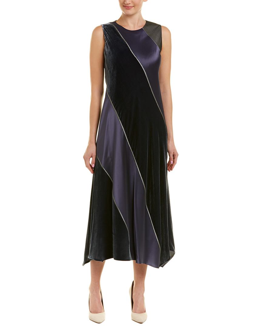 Stylish dress with silky and velvet striped panel details. Crewneck. Sleeveless. Concealed asymmetrical back zip. Asymmetrical hem. Lined. Acetate/polyester/rayon/silk. Dry clean. SIZE & FIT. About 53" from shoulder to hem. Model shown is 5'10" (177cm) wearing US size Small.
