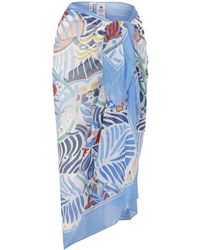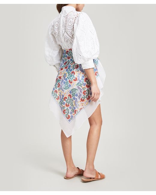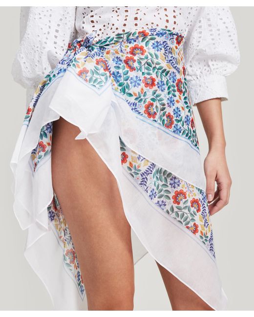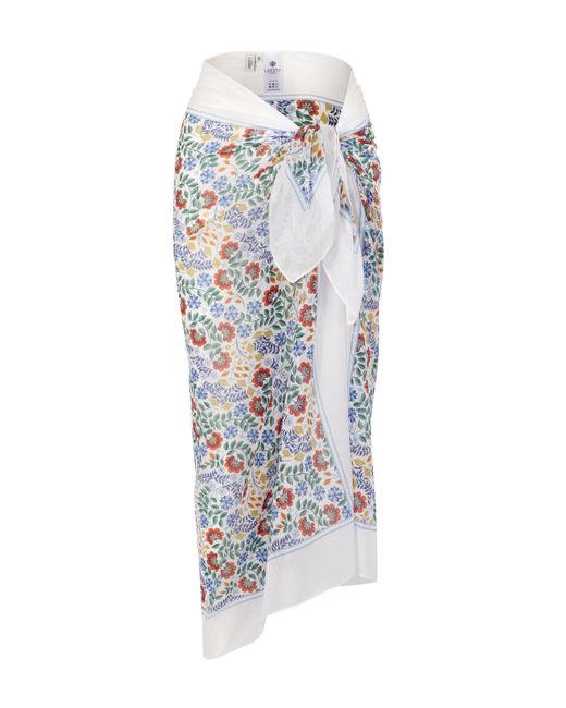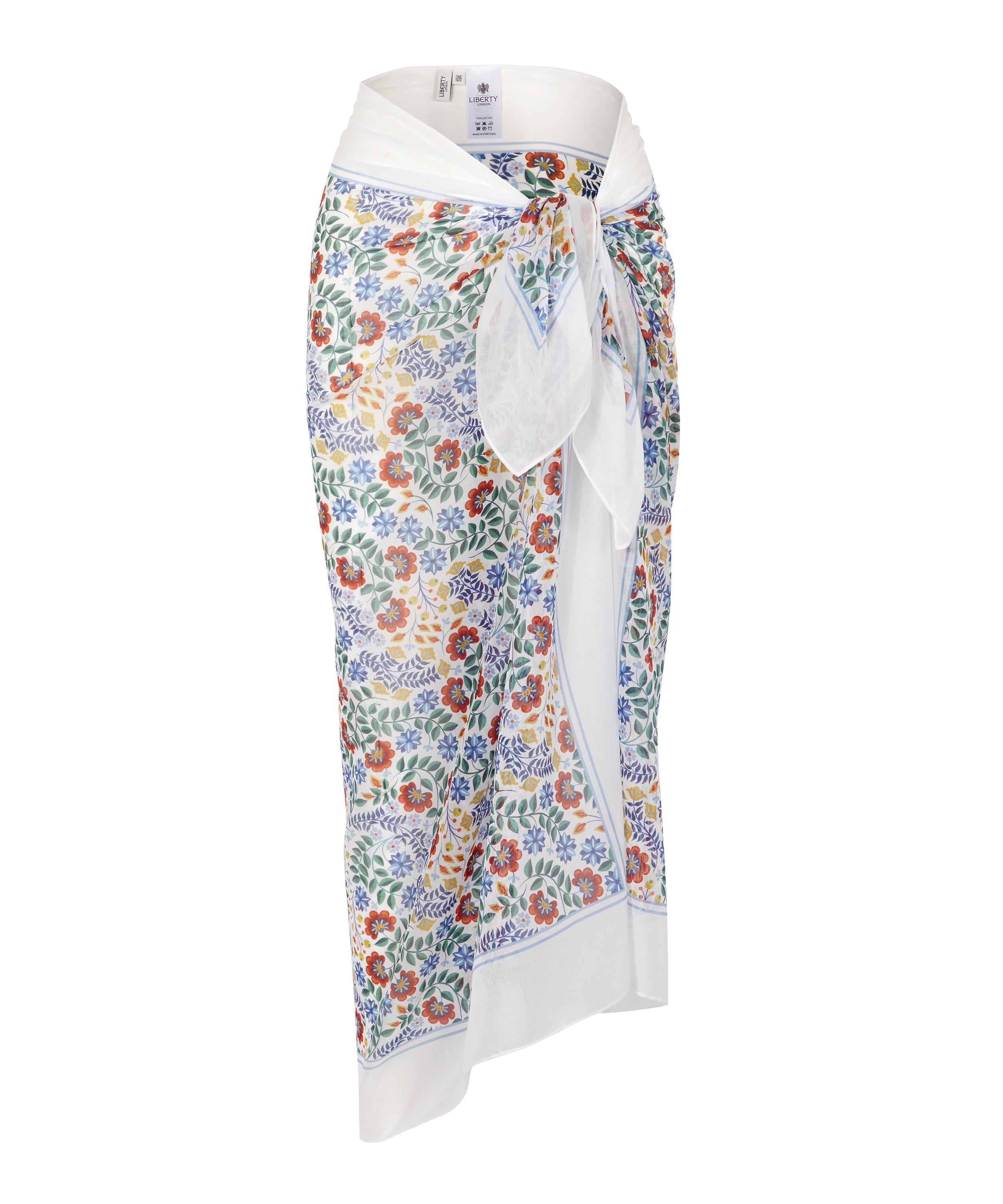 Dauphine sarong. Kiya print. Made in Portugal. Cotton chiffon. Printed in Liberty's Italian mill. Wash cold; Do not bleach; Line dry; Iron inside-out; Do not dry in direct sunlight as UV rays may cause colours to fade. 100% Cotton. W: 111cm, L: 147cm. Model is 162cm/5'4" and wears size S. Liberty London's Dauphine sarong is our largest scarf style yet – designed by the in-house Liberty studio team, it is crafted from pure cotton chiffon and printed by experts at our own Italian mill, featuring Liberty's Kiya print. This sarong exudes beachside cool – crafted from fluidly soft cotton chiffon, it has been printed by experts in our own Italian textile mill for the very best quality of colour and pattern detailing. The cotton surface is printed with our Kiya print – derived from this season's Tree of Life artwork, Kiya features a hand-painted layout of trailing flowers and organic foliage. Tie this sarong as a maxi-skirt or halter-neck dress as the perfect poolside cover-up. Colour: white