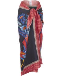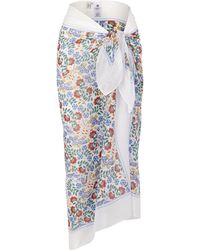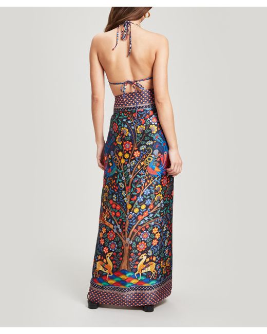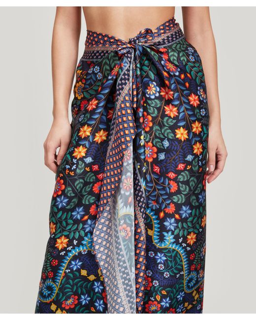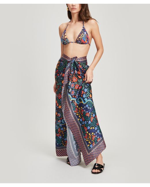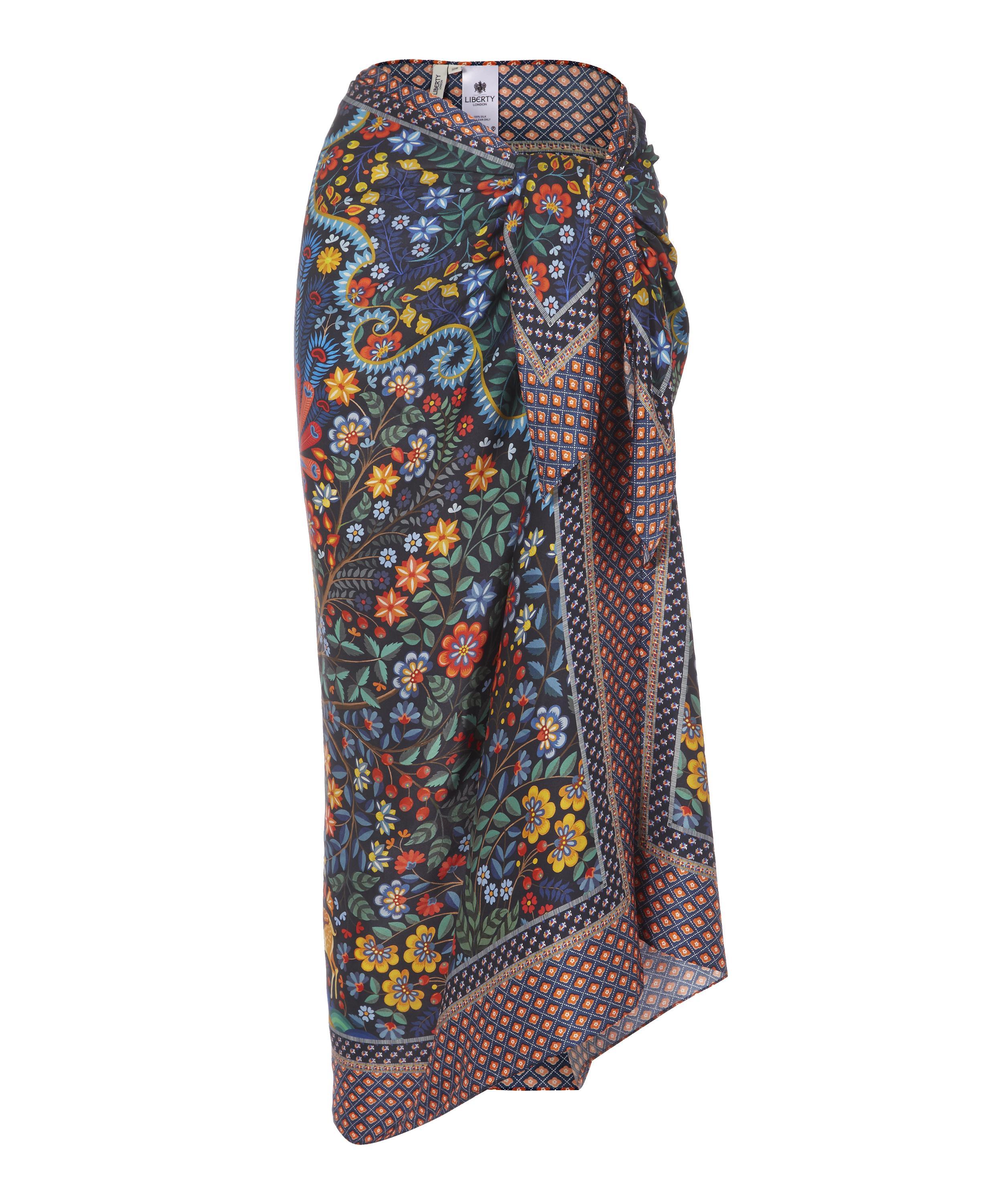 Dauphine sarong. Mina print. Made in Portugal. Dry clean only. 16mm sandwashed silk. 100% Silk. W: 111cm, L: 147cm. Model is 162cm/5'4" and wears size S. Liberty London's Dauphine sarong is our largest scarf style yet – designed by the in-house Liberty studio team, it is crafted from sandwashed silk and printed with our Mina design. This sarong exudes beachside cool – it's crafted from relaxed sandwashed silk, with a beautiful matte sheen and a perfectly soft handfeel. The silken surface is printed with our magnificent placement print, Mina – hand-painted in the Liberty London studio, this intricate Tree of Life design features exotic creatures prowling within densely ornate undergrowth. Tie the sarong as a maxi-skirt or halter-neck dress as the perfect poolside cover-up. Colour: blue