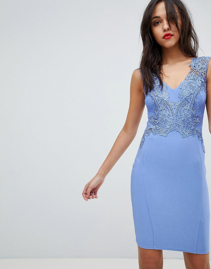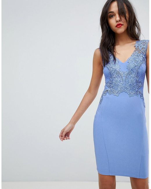 Bodycon dress by Lipsy, For that thing you have to go to, V-neck, Crochet-lace overlay, V-back, Zip fastening, Bodycon fit, Skims in all the right places. Renowned for their statement party dresses, London fashion brand Lipsy channel a young, fun vibe in their partywear, footwear and jewellery collections. Dedicated to delivering fashion forward styles; look out for structured cuts, bold prints and heavy embellishment, with some lines exclusive to ASOS. Elastane/ polyamide/ polyester/ print. Colour: blue