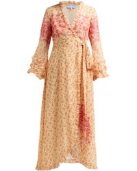 V neckline. Three-quarter length sleeves with elastic inserts. Includes matching self-tie belt. All over print placement may vary. Includes slip dress. 100%se.