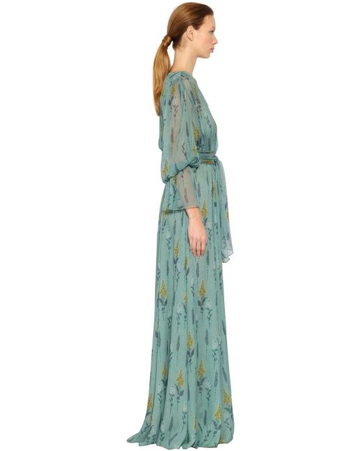 V Neckline. Three-quarter length sleeves with elastic inserts. Includes matching self-tie belt. All over print placement may vary. Includes slip dress. Colour: blue