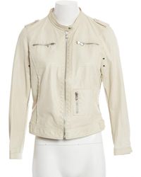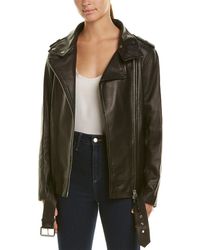 Color/pattern: bordeaux Approximately 19in from shoulder to hem Measurement was taken from a size small and may vary slightly by size Design details: two front pockets, belt at hem Zipper front with snap closures Zipper closures at sleeve hem Medium weight Shell: 100% real lambskin Lining: 100% polyester Dry clean by leather expert only Imported.