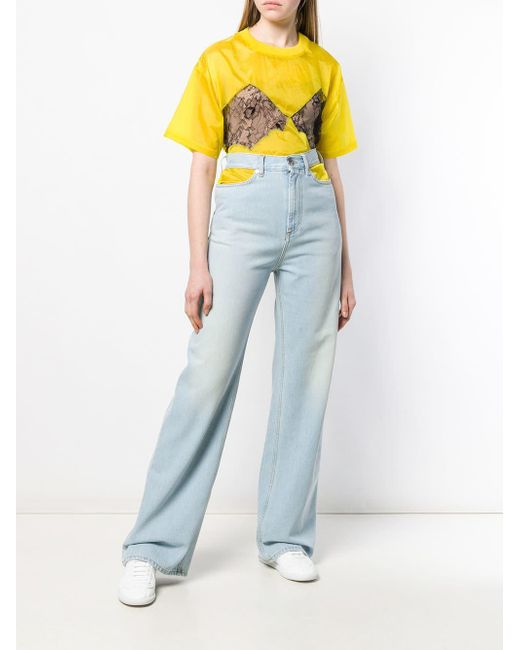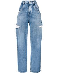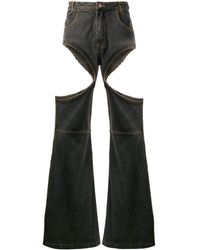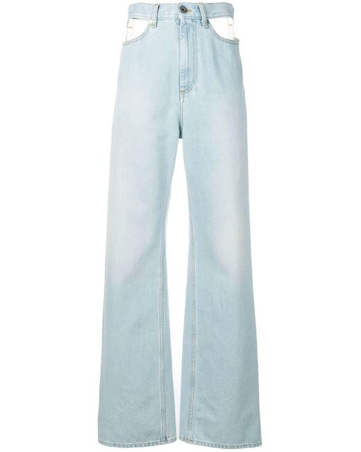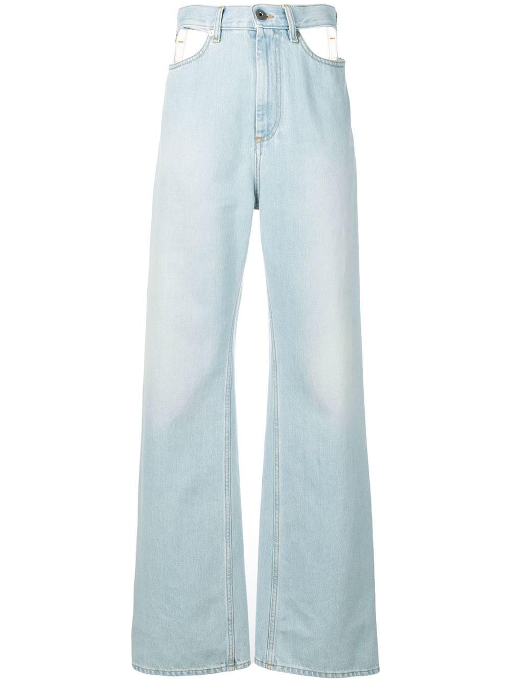 French fashion house Maison Margiela was originally founded in 1988 and plays with themes of deconstructionism and reinterpretation. Crafted in Italy, these light blue cotton cut-out wide leg jeans from Maison Margiela feature a high rise, a waistband with belt loops, a button and zip fly, cut out details, a wide leg and a long length. Material:CottonCotton.