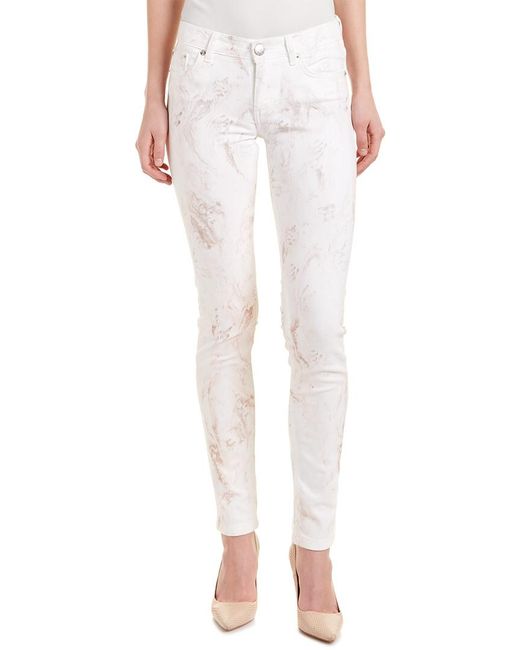 Please note: Size selections are European. For US conversions, please reference the size chart. Color/pattern: printed. Inseam approximately 31in. 8in front rise; 12in back rise. Leg opening has an approximate 11in circumference. Measurement was taken from a size 36 and may vary slightly by size. Design details: belt loops, classic five-pocket styling. Zip fly with button closure. 94% cotton, 5% polyester, 1% spandex. Lining: 65% polyester, 35% cotton. Machine wash. Women's Denim Guide. Colour: white