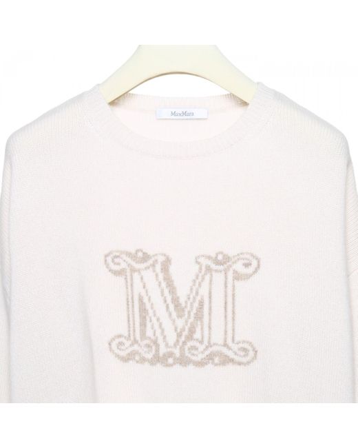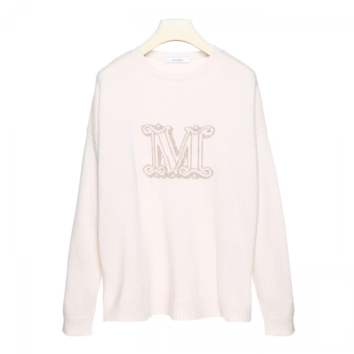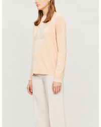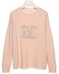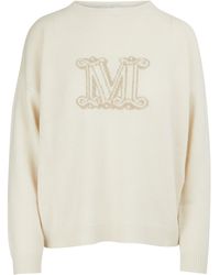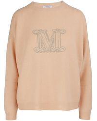 Max Mara Cannes cashmere jumper featuring inlay at front panel, ribbed crewneck, cuffs and waist. Colour: multicolour