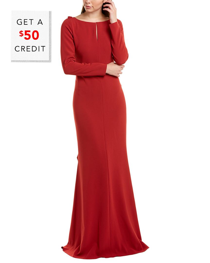 Color/pattern: ruby Approximately 63in from shoulder to hem Measurement was taken from a size 4 and may vary slightly by size Model is 5ft 10in Design details: keyhole front, chiffon back panel with self-tie straps and O-ring detail, open back Centre back zipper with hook-and-eye closure Self: 100% silk Contrast: 70% triacetate, 30% polyester Lining: 89% acetate, 6% silk, 5% nylon Dry clean only Made in Italy Your account will be credited within 48 hours after this item ships. The Account Credit is not valid for prior purchases or balances and must be used within sixty (60) calendar days after the Account Credit is deposited into your account (the "Account Credit Period"). Upon expiration of the applicable Account Credit Period any unused Account Credit will automatically expire. Colour: red