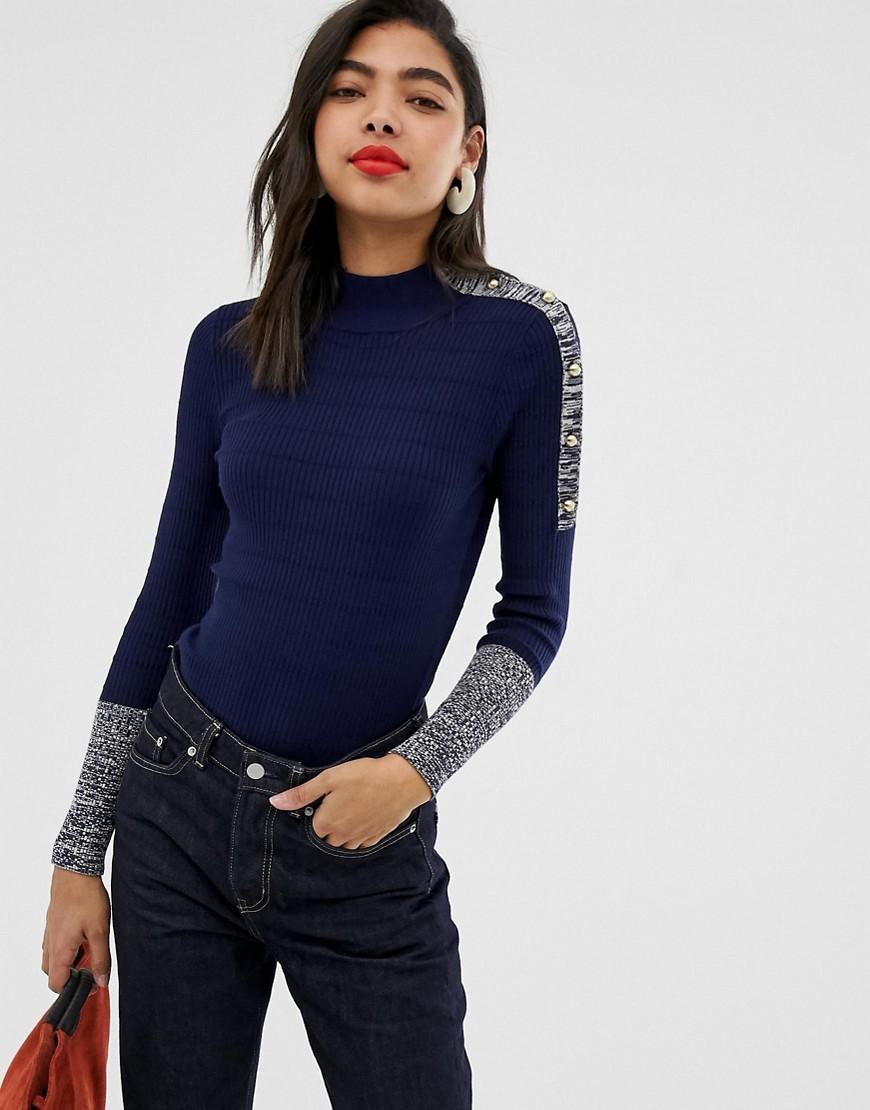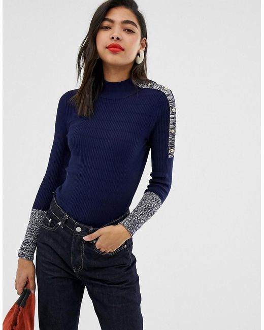 Jumper by MAX Co, Ideal for layering, High roll-neck, Contrast button placket, Slim fit, A narrow cut that sits close to the body. MAX Co draws on its Italian roots in its carefully made and easy-to-wear collections. Upgrade your style staples with its range of jersey, striped shirts and embroidered dresses. Jersey/ polyester/ rayon. Colour: blue