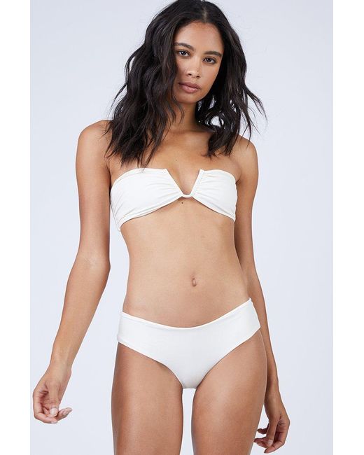 STYLE: Mid-rise cheeky bikini bottom in luxe solid white fabric. Wide boyshort-style side straps keep you stylishly modest and hug your curves without digging into your skin. Luxurious bone colored fabric is double lined for durability and comfort. The MIKOH Bondi Boyshort Bikini Bottom has been spotted on Olympic gymnast Simone Biles. MIKOH runs small, so we recommend sizing up in this style. Complete the minimalistic white bikini with the matching Reunion V-Wire Bandeau Bikini Top. CARE: Hand wash in cold water with gentle detergent and lay flat to air dry. 80% nylon, 20% spandex. Colour: white