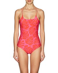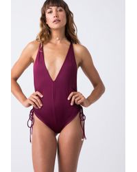 Women's Kilauea Scoop Neck Strappy One Piece Swimsuit - Botanical Wine Purple Print