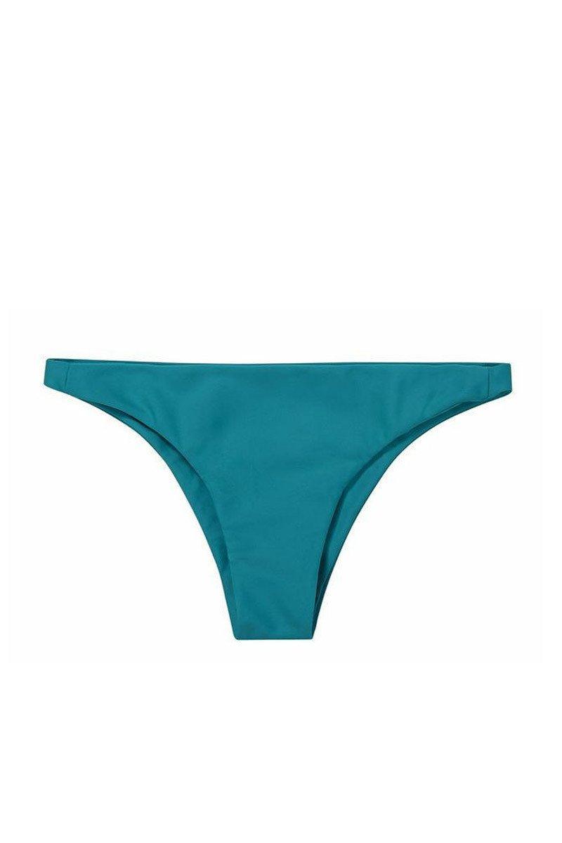 STYLE: Low-rise Brazilian cut bikini bottom in dreamy Caribbean blue. Luxurious teal fabric is double lined for durability and comfort. Low rise cut elongates your torso while the cheeky Brazilian backside shows off your curves. Minimal coverage tan lines and simple sides hug your curves without digging into your skin. Bulk-free design is free of ties and hardware for easy all-day wear. Mix and match with any of MIKOH's playful top silhouettes. MIKOH runs small so we recommend sizing up. CARE: Hand wash in cold water with gentle detergent and lay flat to air dry. 80% nylon, 20% spandex. Made in Bali. Colour: blue